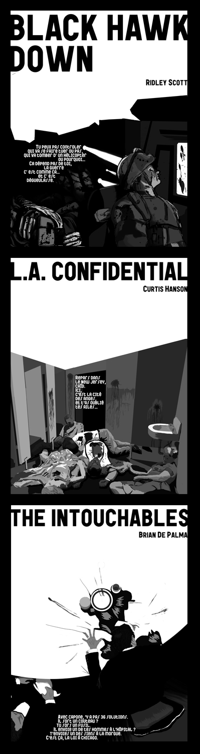 Toujours autour de films sombres, violents appartenant au genre des thrillers et des policiers, nous avons donc réalisé ces quelques affiches ensemble.